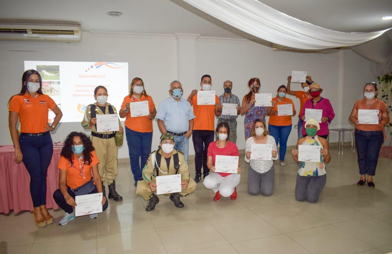 En total fueron 18 líderes animalistas que se capacitaron y certificaron con respecto a la normatividad, procedimientos, autoridades garantes de los derechos de los felinos y caninos así como de la guía de manejo para atención de casos de maltrato animal, entre otros temas que buscan garantizar los derechos de la fauna doméstica samaria.