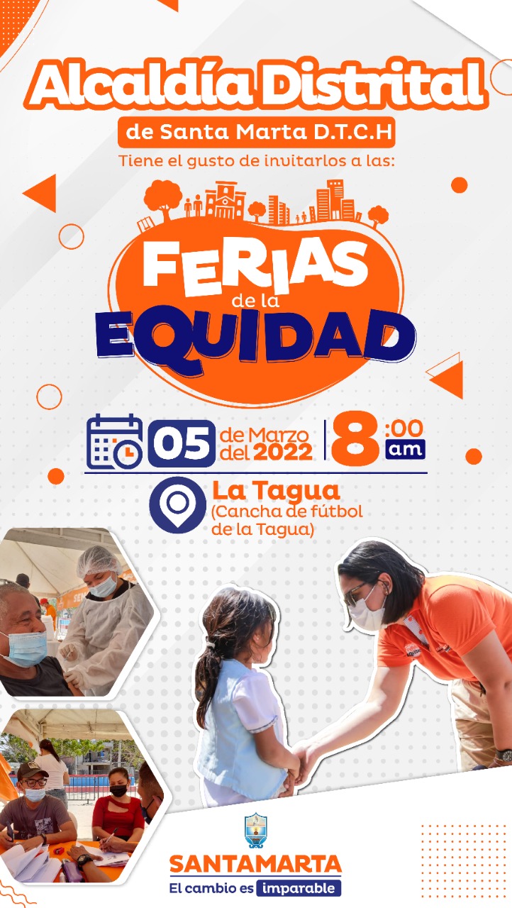 Este sábado 5 de marzo, la Feria de la Equidad estará enmarcada entre la belleza natural de la Sierra Nevada de Santa Marta, cuando este programa, ganador del Premio Nacional de Alta Gerencia en el año 2020, hará presencia en la vereda La Tagua, del corregimiento de Minca. Allí, las comunidades indígenas ancestrales habitantes de la montaña costera más alta del mundo, accederán a servicios de salud, educación, atención integral a la familia, emprendimiento, entre otros programas que dignifican la vida y acercan las comunidades a más de cien programas de la oferta institucional de la Alcaldía Distrital.