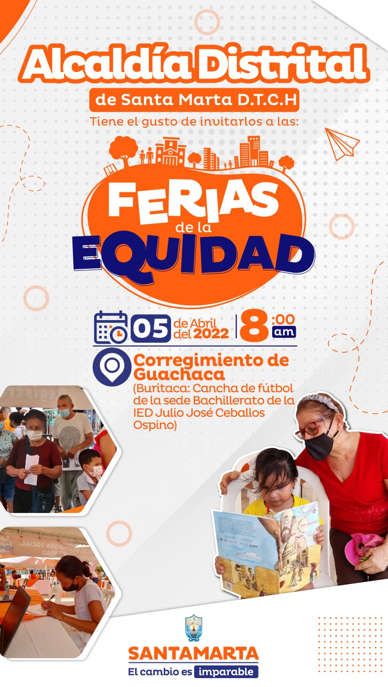En el año 2022 los cambios positivos siguen imparables, más de 18.000 mil habitantes de Santa Marta han recibido las Ferias de la Equidad en este primer trimestre, el programa que recorre los barrios, veredas y corregimientos ha logrado facilitar a las comunidades, el acceso de manera sencilla a los programas sociales ofertados por la Alcaldía de Santa Marta, y todas las entidades que se suman e implementan los servicios, generando transformación y calidad de vida, en aras de dignificar la construcción social de los habitantes de la ciudad.