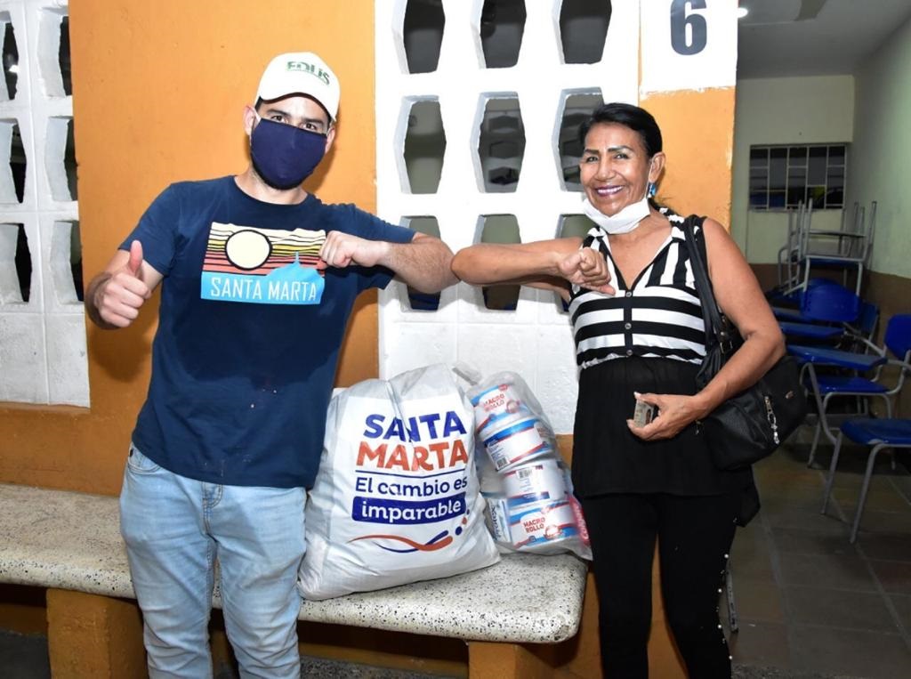 Los vendedores informales de sectores comerciales y turísticos como: Centro Histórico incluyendo la carrera Quinta, Parque de los Novios, Bolívar, Plaza San Francisco y camellón de la Bahía; además de El Rodadero, Playa Blanca y Bello Horizonte, recibieron estas ayudas la noche anterior, las cuales consisten en alimentos no perecederos y elementos de aseo personal y para el hogar, que proveen abastecimiento de aproximadamente un mes.