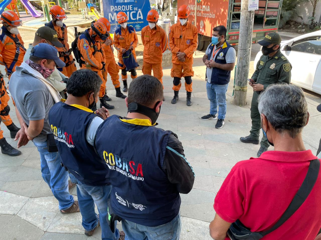 Para esta operación, la Ogricc contará con el apoyo de 15 voluntarios de la Defensa Civil Colombiana Seccional Magdalena, cinco voluntarios del Cuerpo de Bomberos de Santa Marta, miembros de la Policía Metropolitana, voluntarios miembros del Comité Barrial Samario (Cobasa) que opera en la zona, dos buzos profesionales que proporciona una empresa privada y funcionarios de la entidad.