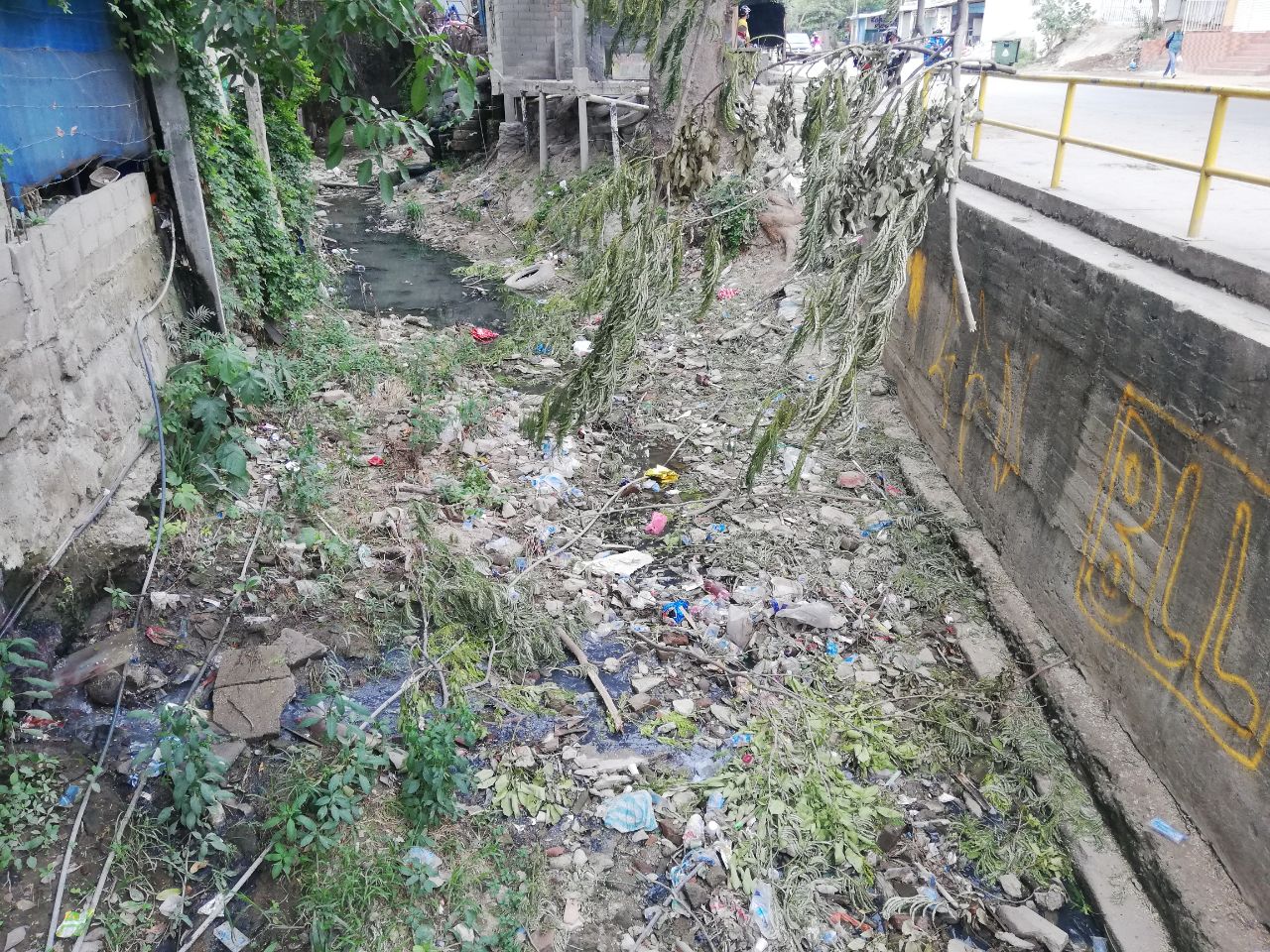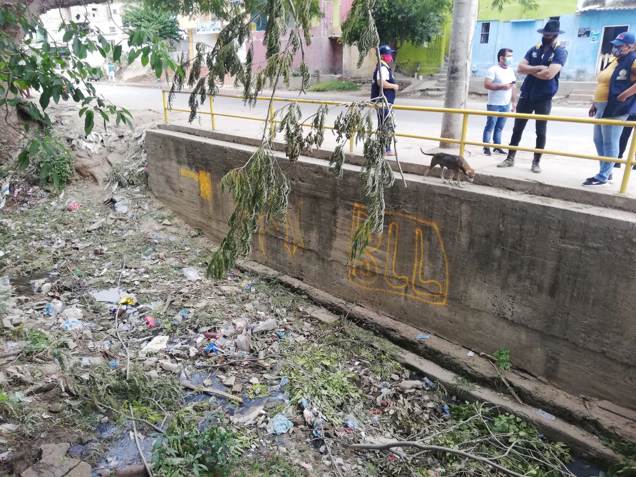 Junto a los agentes barriales, el funcionario identificó la problemática de acumulación de residuos sólidos, vegetales e inservibles en la quebrada Tamacá, a la altura de la calle 30 con carrera 28, del barrio La Lucha, donde hace menos de un año, el Gobierno Distrital realizó una intervención mecánica a través del Banco de Maquinaria Amarilla (BAMAM), con apoyo manual de los Guardianes del Río y Conservación de Cerros (Gricc), para la recolección de estos elementos.