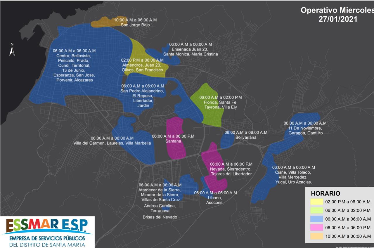 El área de Acueducto de la Empresa permite informales la distribución de agua del miércoles 27 de enero para la zona Norte de la ciudad es la siguiente: