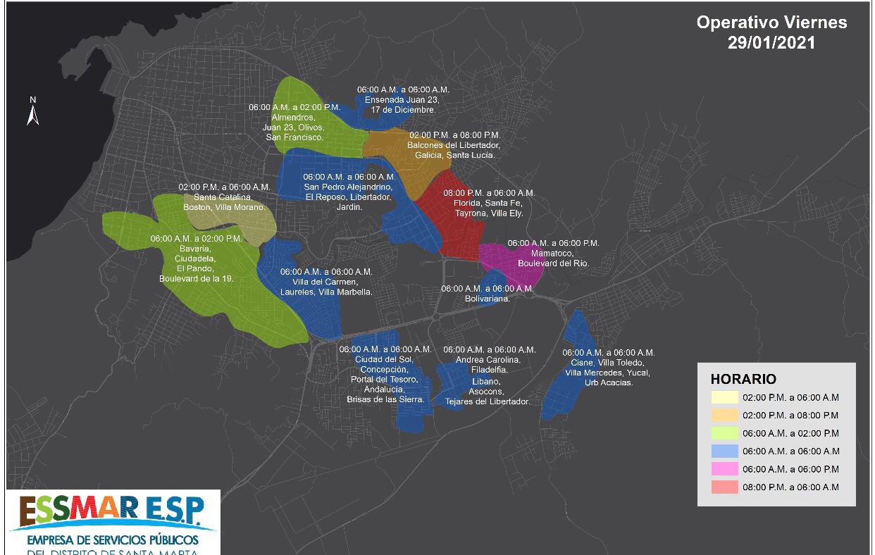 El área de Acueducto de la Empresa permite informales la distribución de agua del viernes 29 de enero en la zona norte de la ciudad es la siguiente: