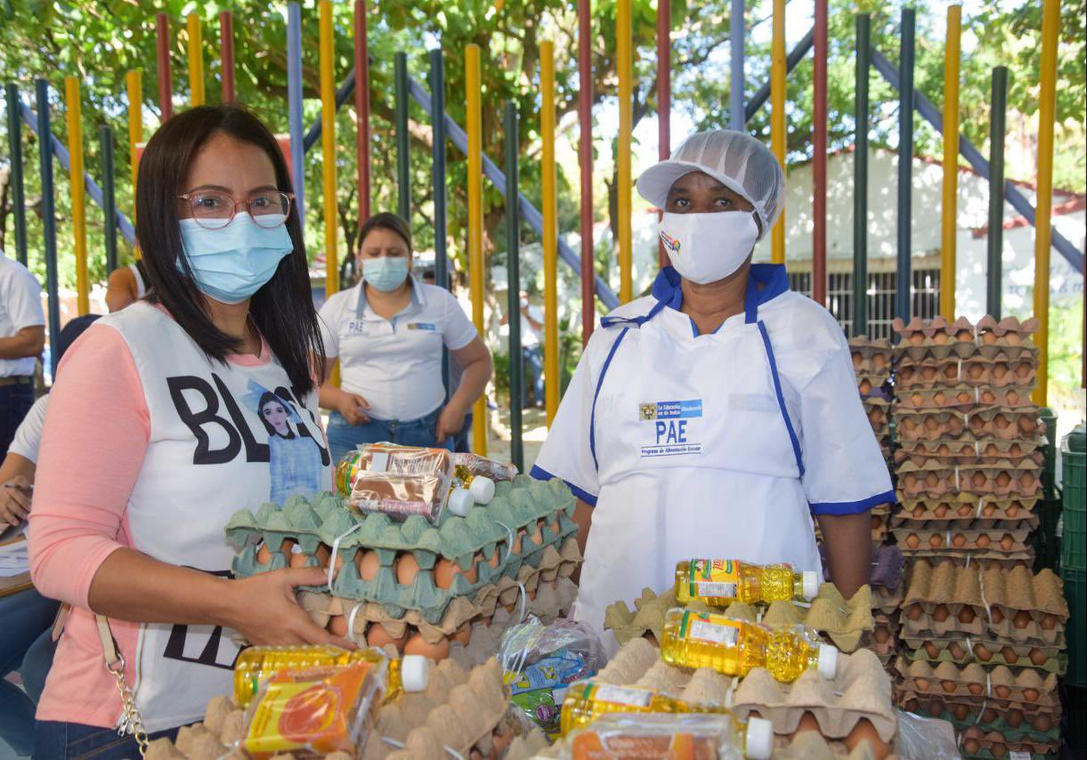 El programa comenzó a ejecutarse desde el pasado 19 de marzo y se adelantará en 73 instituciones educativas, mediante la modalidad de entrega de raciones para preparar en casa, la cual se cumple de manera organizada, guardando todos los protocolos de bioseguridad.