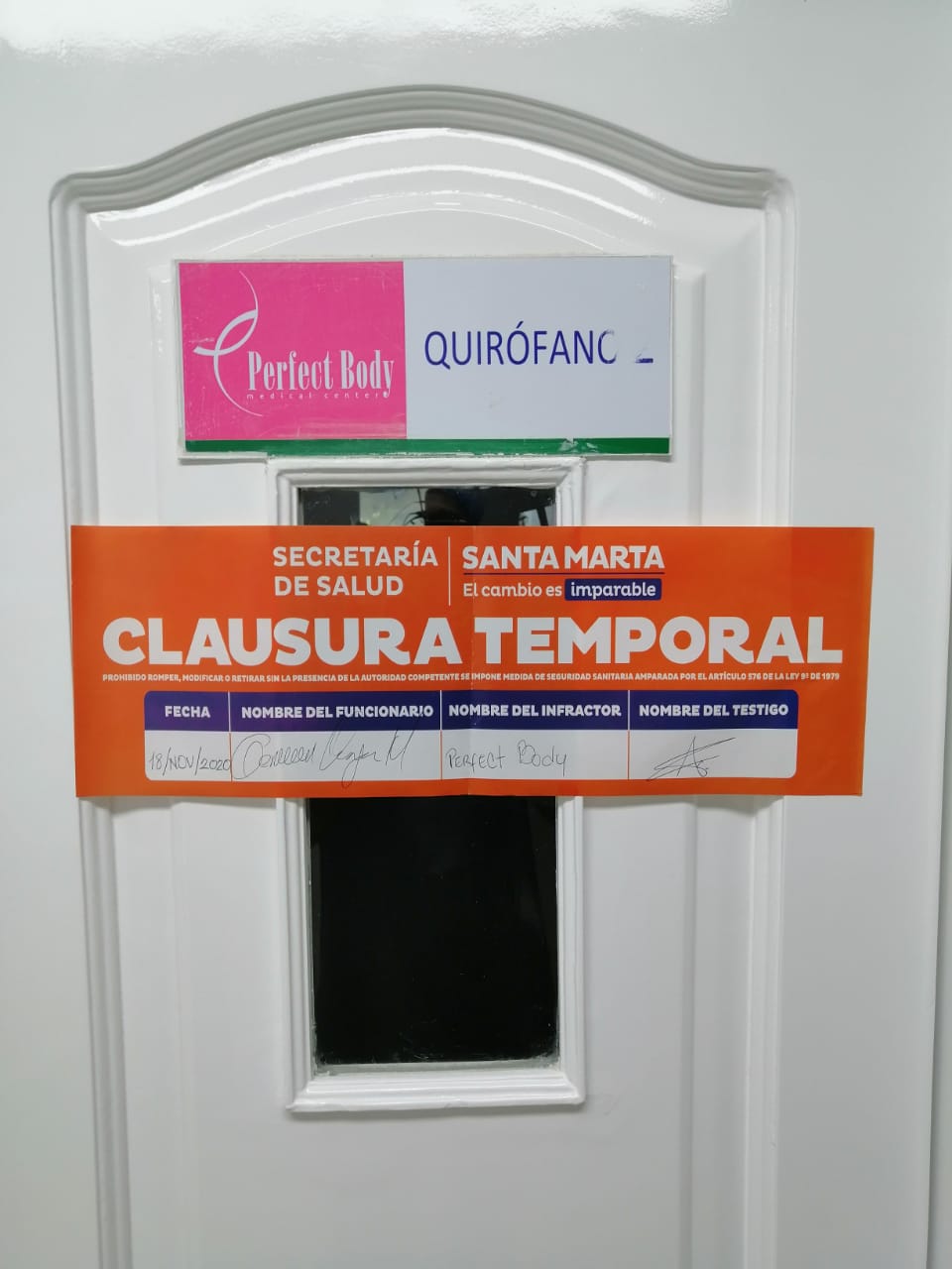 Durante la semana anterior y esta, con motivo de una queja de un usuario presentada a la Superintendencia Nacional de Salud -SNS-, la cual por competencia remitió a la Secretaría de Salud Distrital -SSD-, la autoridad sanitaria en el Distrito realizó visita de IVC en Perfect Body Medical Center, donde se pudo evidenciar varias irregularidades en su funcionamiento, por lo que se ordenó la clausura temporal de cuatro servicios que se prestan en este centro asistencial.
