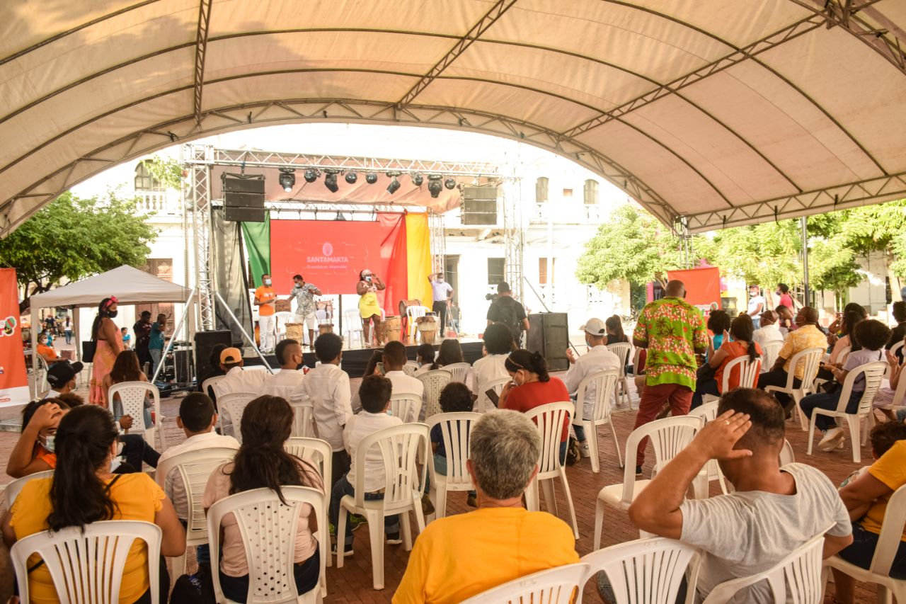 Luego, en la agenda de la tarde, la comunidad afro y visitantes, disfrutaron de la muestra cultural de los niños y jóvenes de la EFAC que incluyó baile y un espectacular encuentro de tamboreros; a lo que siguió el conversatorio "Herencia Afro", que fue moderado por la Secretaria de Promoción Social, Inclusión y Equidad, Yunia Palacios Cuesta, donde los expositores Carlos Miliany y Ernesto Caiafa, relataron la historia de los Afro en Santa Marta, un espacio que enriqueció los conocimientos a los asistentes.