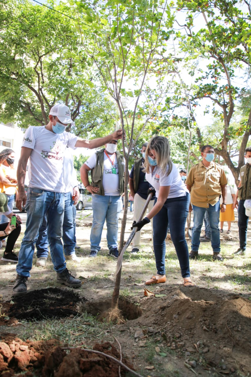 “Se trata de una iniciativa que hace parte del Plan de Desarrollo Distrital ‘Santa Marta, Corazón del Cambio’ que le va a generar muchos beneficios al planeta y a la ciudad en materia de reducción de la temperatura, reforestación y un frente al cambio climático. Sembrar un árbol es tener conciencia ambiental y ser responsable con la vida, es no quedarnos inertes ante el calentamiento global por eso en Santa Marta nos esforzamos para contribuir a la disminución de la temperatura y de focos de calor. Somos un Distrito Verde que busca mejores condiciones ambientales y el bienestar de la población”, indicó la alcaldesa.