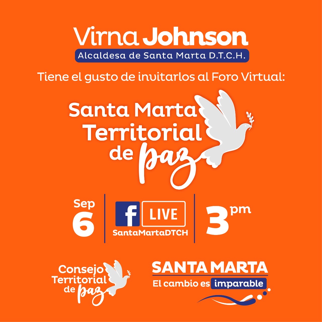 La Alcaldía Distrital de Santa Marta, bajo el liderazgo de la Alta Consejería para la Paz y el Postconflicto, llevará a cabo el foro ‘Santa Marta territorio de paz’, encuentro que se realizará entre el 6 y el 13 de septiembre en el marco de la semana de conmemoración nacional de la paz.