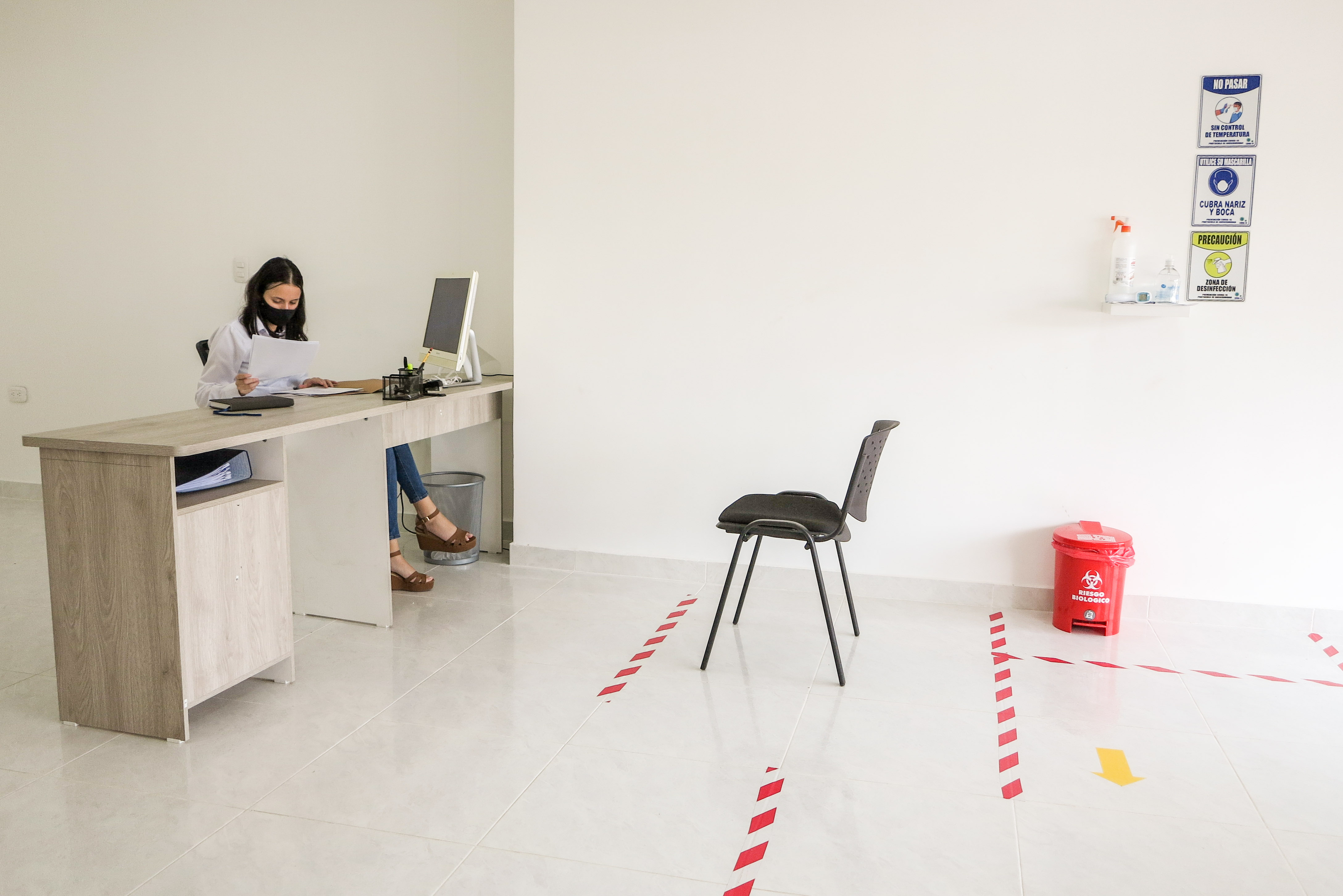 Esta oficina cuenta con todos los protocolos de bioseguridad establecidos por el Gobierno Nacional y se encuentra ubicada en la Avenida El Libertador con carrera 18 (Palma Real) local 1. Al ingresar, el usuario encontrará un tapete de desinfección para los pies, toma de temperatura y registro de visitas, aplicación de alcohol y gel antibacterial para las manos, en cada una de las sillas encontrará cintas que indican donde puede tomar asiento manteniendo la distancia permitida.