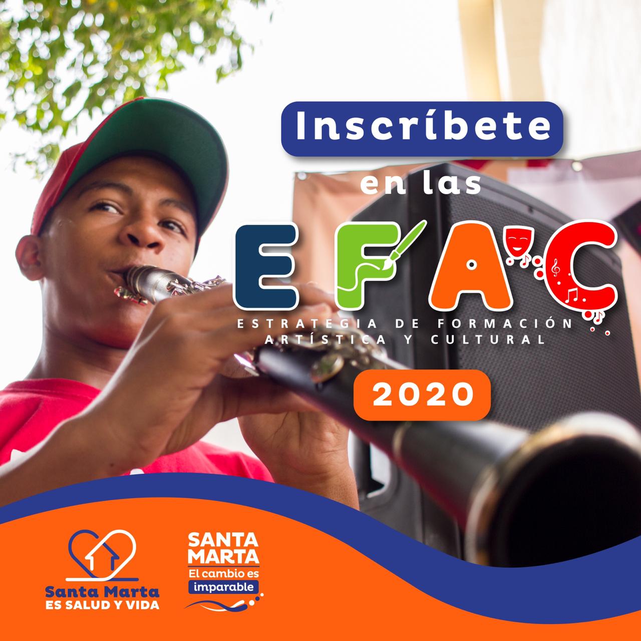 La Alcaldía Distrital de Santa Marta, a través de la Secretaría de Cultura, informa a samarios y samarias que siguen abiertas las inscripciones a la Estrategia de Formación Artística y Cultural del Distrito – EFAC-.