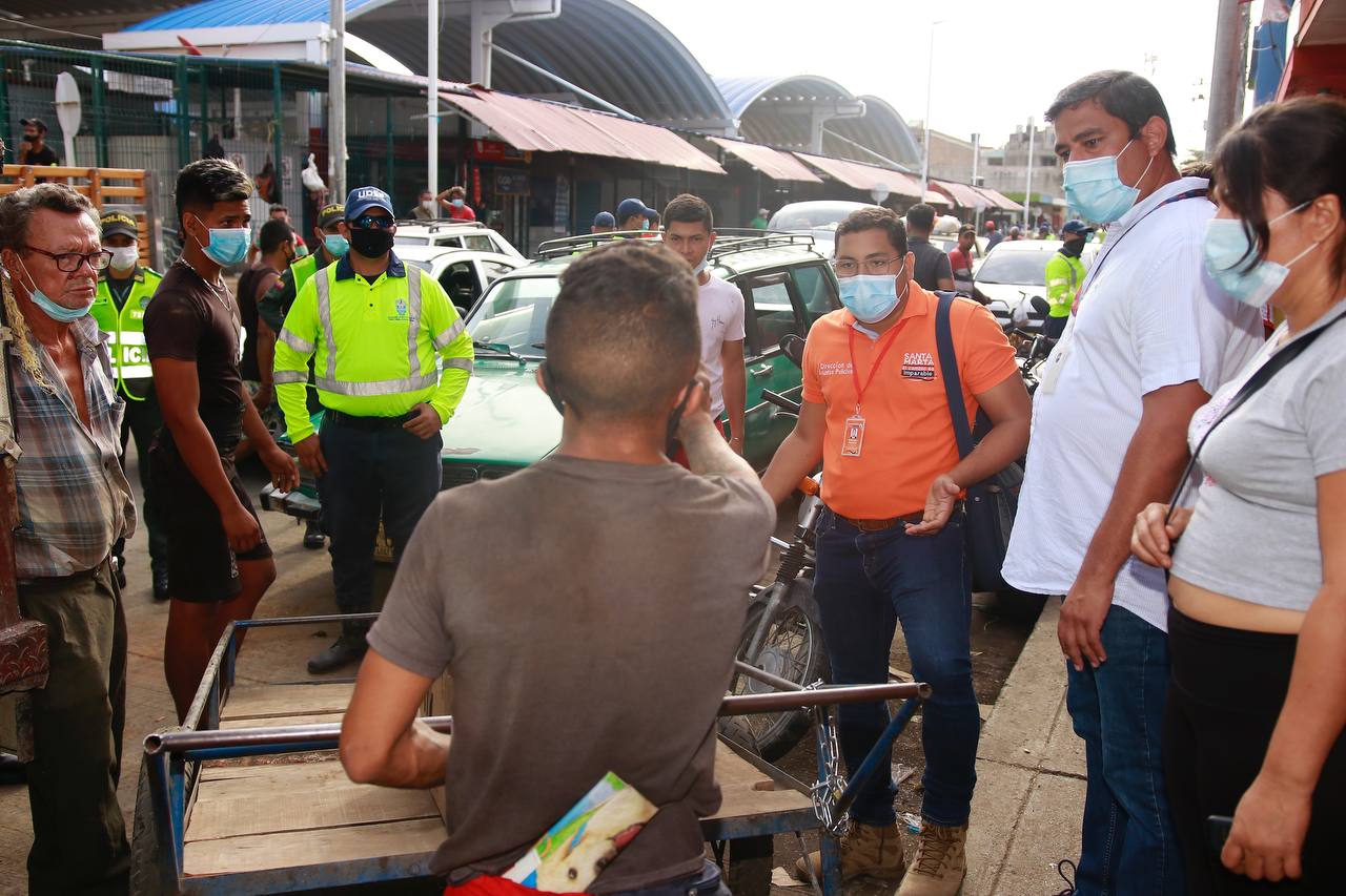Durante los operativos se socializó con los comerciantes formales e informales las disposiciones de la alcaldesa Virna Johnson para que las zonas estén libres para la circulación y evitar los focos de contagio de Covid-19.