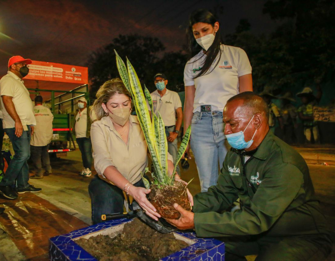 “Hago un llamado a la ciudadanía en Santa Marta para que nos ayude a mantener las plantas, estamos recuperando estas 587 jardineras para el embellecimiento de la ciudad”, dijo Johnson.