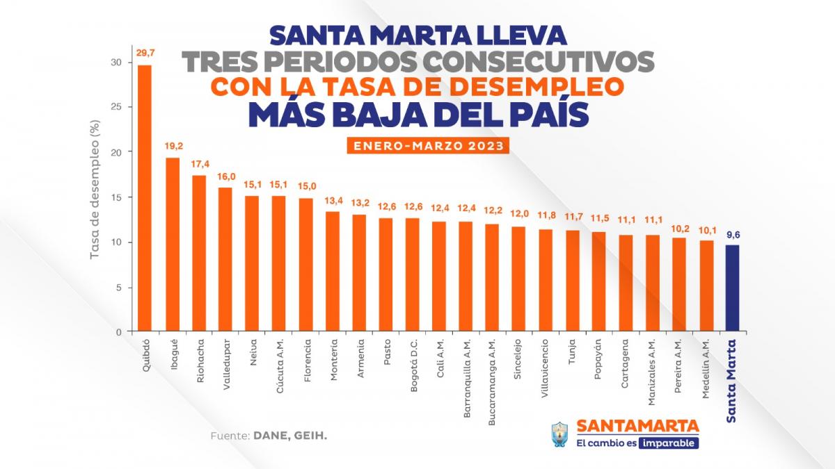 Santa Marta lleva tres periodos consecutivos con la tasa de desempleo más baja del país Mayo 3 de 2023