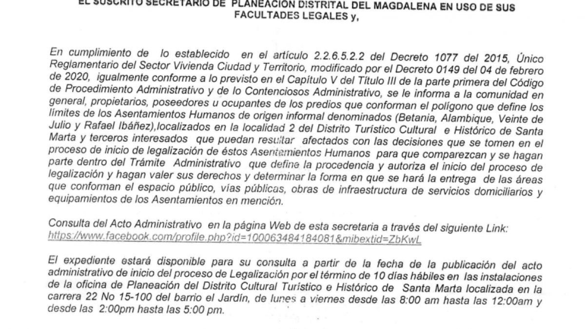 Alcaldía Distrital inicia proceso de legalización de los asentamientos Betania, Alambique, 20 de Julio y Rafael Ibáñez Abril 21 de 2023
