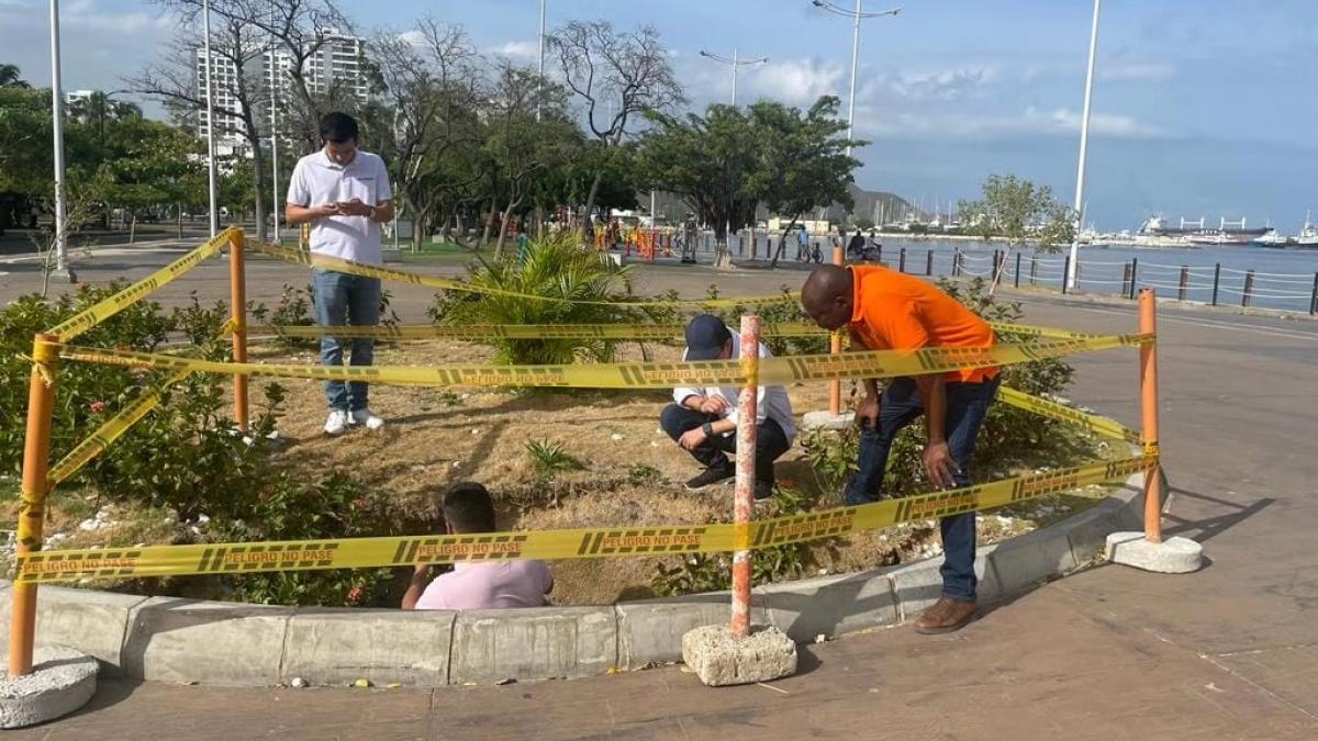 Equipo técnico especializado realizó inspección al asentamiento de tierra en jardinera del Camellón de la Bahía Agosto 16 de 2023
