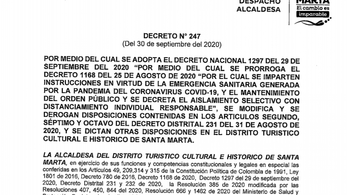 Distrito autoriza la apertura de hoteles boutique y extiende horarios para el comercio e iglesias Septiembre 30 de 2020