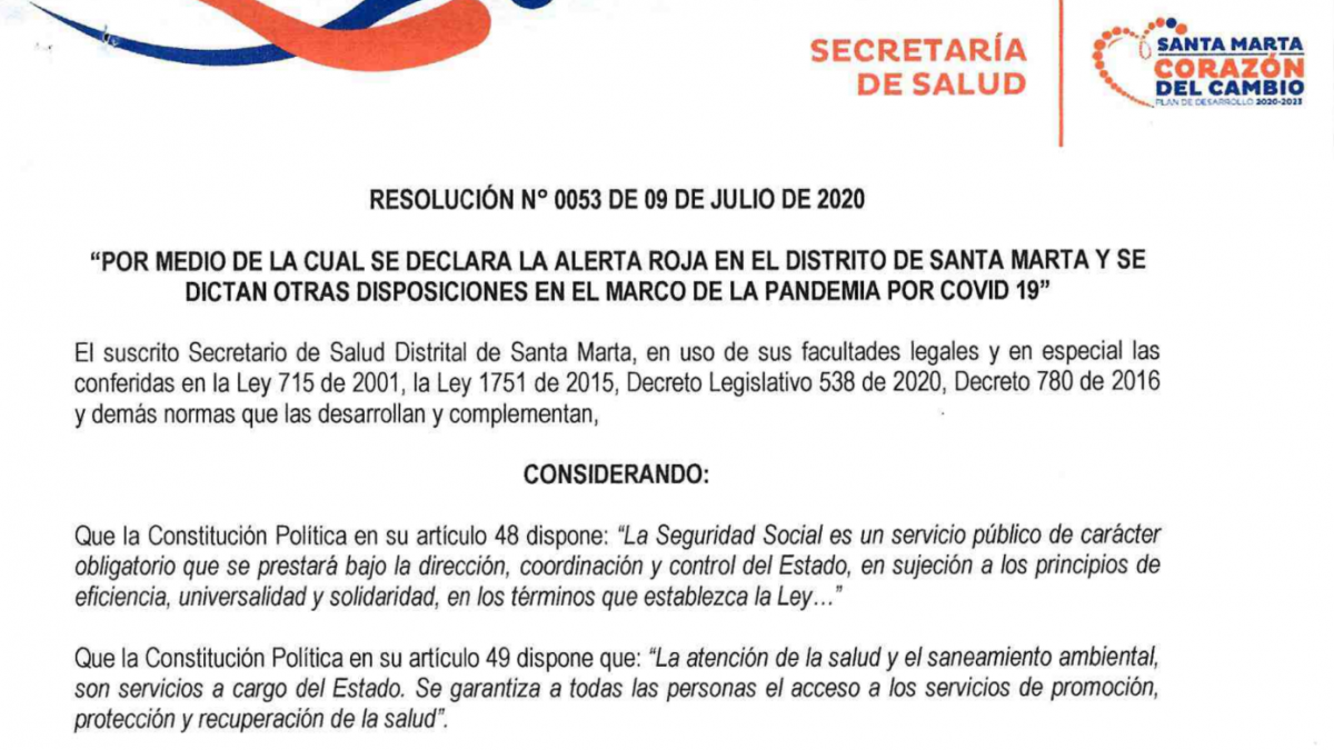 COMUNICADO A LA OPINIÓN PÚBLICA - DECLARATORIA DE ALERTA ROJA HOSPITALARIA EN EL DISTRITO Julio 10 de 2020