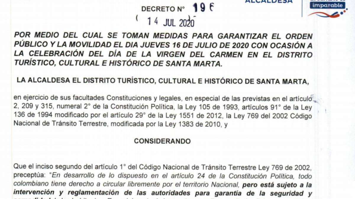 Alcaldía de Santa Marta presenta positivo balance de seguridad en el puente festivo de la Independencia Julio 21 de 2020
