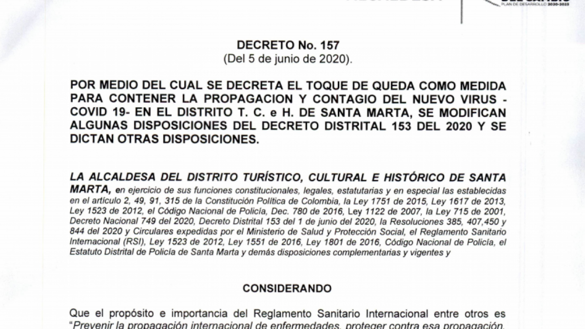 Distrito decreta toque de queda, modifica pico y cédula por días festivos y dicta nuevas disposiciones Junio 5 de 2020
